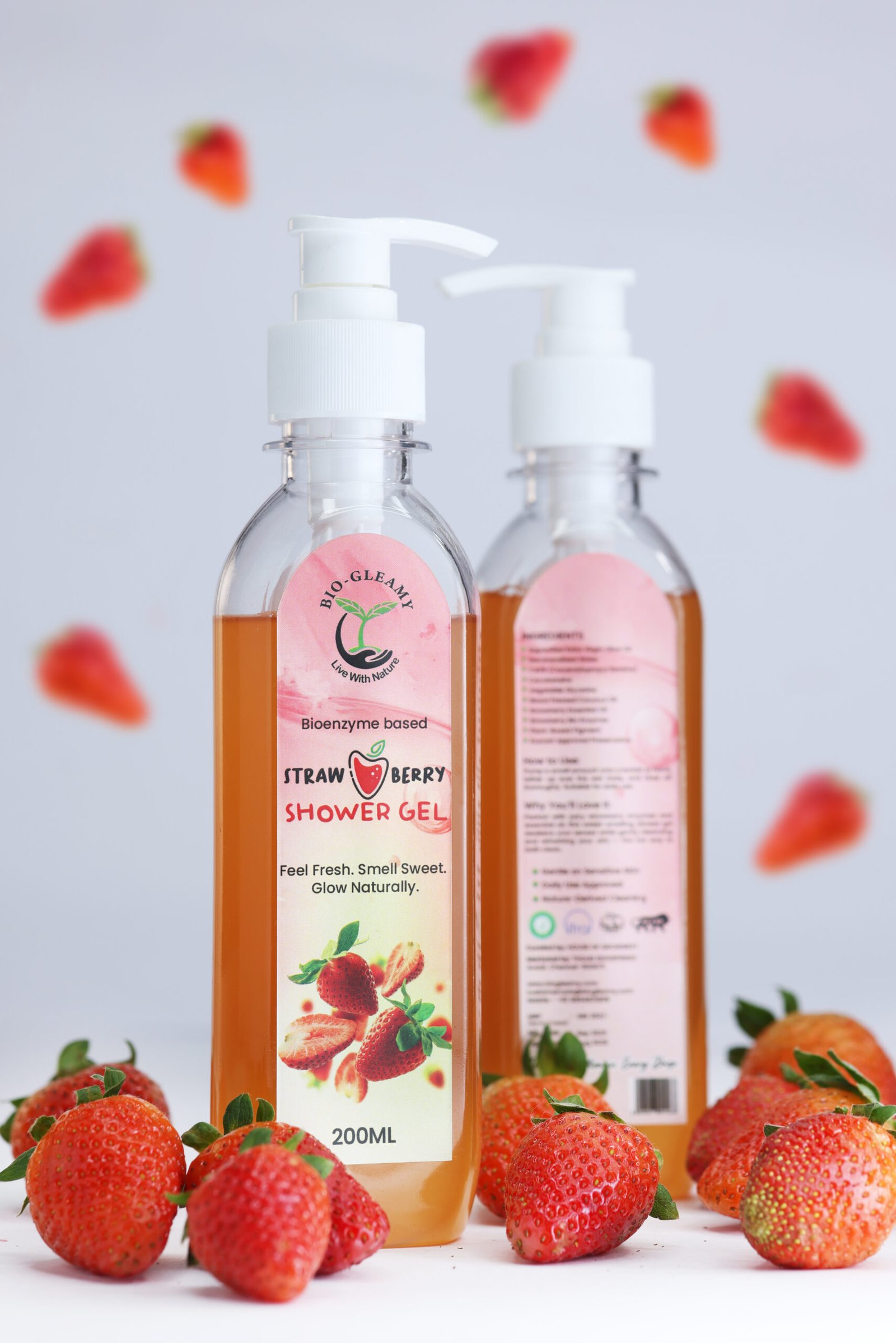 Packed with juicy strawberry enzymes and essential oil, this sweet-smelling shower gel awakens your senses while gently cleansing and refreshing your skin — the fun way to bathe clean. It’s a cleansing body gel that uses fruit-derived enzymes. Gently exfoliate dead skin cells, combined with strawberry extract or puree for antioxidant benefits, fragrance, and a refreshing feel.